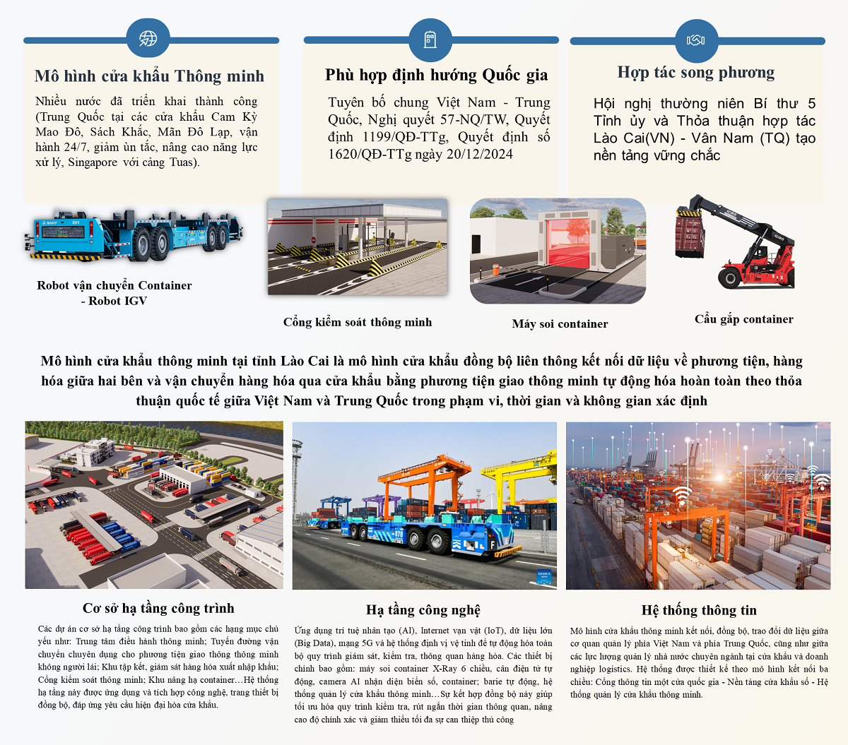 Thảo luận tại Đại hội, đại biểu Vương Trinh Quốc - Trưởng Ban Quản lý các khu kinh tế tỉnh Lào Cai nhấn mạnh, mô hình cửa khẩu thông minh tại tỉnh Lào Cai là mô hình cửa khẩu đồng bộ liên thông kết nối dữ liệu về phương tiện, hàng hóa giữa hai bên và vận chuyển hàng hóa qua cửa khẩu bằng phương tiện giao thông minh tự động hóa hoàn toàn theo thỏa thuận quốc tế giữa Việt Nam và Trung Quốc trong phạm vi, thời gian và không gian xác định. Việc triển khai mô hình cửa khẩu thông minh giúp tăng năng lực thông quan gấp 2 lần, đồng thời chi phí logistics giảm từ 20 - 30%. Nâng cao quản lý nhà nước, đảm bảo an ninh biên giới, quy trình minh bạch, giảm ùn tắc, giảm phát thải.