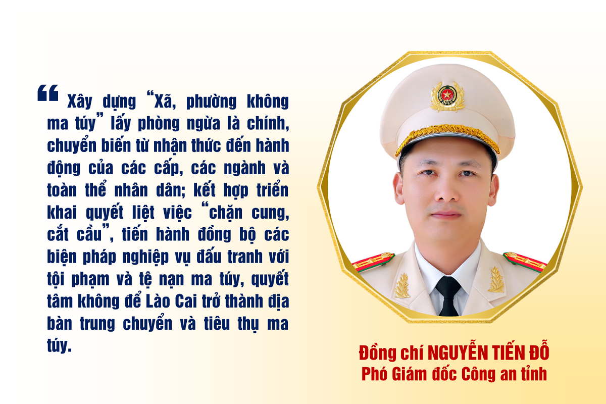 Đại diện Đảng bộ Công an tỉnh thảo luận tại Đại hội về chủ đề “Xây dựng xã, phường không ma túy gắn với phong trào toàn dân bảo vệ an ninh Tổ quốc”, đại biểu Nguyễn Tiến Đỗ - Phó Giám đốc Công an tỉnh nhấn mạnh các giải pháp xây dựng “Xã, phường không ma túy” lấy phòng ngừa là chính, chuyển biến từ nhận thức đến hành động của các cấp, các ngành và toàn thể nhân dân; kết hợp triển khai quyết liệt việc “chặn cung, cắt cầu”, tiến hành đồng bộ các biện pháp nghiệp vụ đấu tranh với tội phạm và tệ nạn ma túy, quyết tâm không để Lào Cai trở thành địa bàn trung chuyển và tiêu thụ ma túy. Để thực hiện nội dung này, Công an tỉnh tập trung thực hiện 5 nhóm giải pháp gồm: Phát huy sức mạnh của hệ thống chính trị trong công tác xây dựng “Xã, phường không ma túy” tạo sự thống nhất nhận thức, ý chí, hành động của cả hệ thống chính trị và toàn dân, toàn quân tích cực thực hiện có hiệu quả các nhiệm vụ, giải pháp để kiềm chế, ngăn chặn, đẩy lùi tội phạm, tệ nạn ma túy; Triển khai đồng bộ các biện pháp phòng ngừa tội phạm và tệ nạn ma túy trên địa bàn trọng tâm là triển khai phong trào “Toàn dân tham gia phòng, chống ma túy” với thông điệp “mỗi người dân là một chiến sỹ, mỗi gia đình là một pháo đài trong phòng, chống ma túy” để người dân lên án, không chấp nhận sự tồn tại của tội phạm ma túy; Tập trung đấu tranh, trấn áp mạnh với tội phạm và tệ nạn ma túy, triệt xóa các đường dây phạm tội về ma tuý từ xa, từ sớm. Đẩy nhanh tiến độ điều tra, truy tố, xét xử các vụ án phạm tội về ma túy bảo đảm không bỏ lọt tội phạm, không làm oan người vô tội; Nâng cao hiệu lực, hiệu quả quản lý nhà nước về an ninh, trật tự và kiểm soát chặt chẽ các hoạt động hợp pháp liên quan đến ma túy, không để tội phạm ma túy lợi dụng hoạt động; Phát huy hiệu quả phối hợp với các lực lượng chức năng và hợp tác quốc tế trong phòng, chống ma túy. Thu hút, tranh thủ các nguồn khinh phí ,viện trợ, huy động sự đóng góp bảo đảm cho công tác phòng, chống, kiểm soát ma túy và xây dựng “Xã, phường không ma túy” trên địa bàn tỉnh.