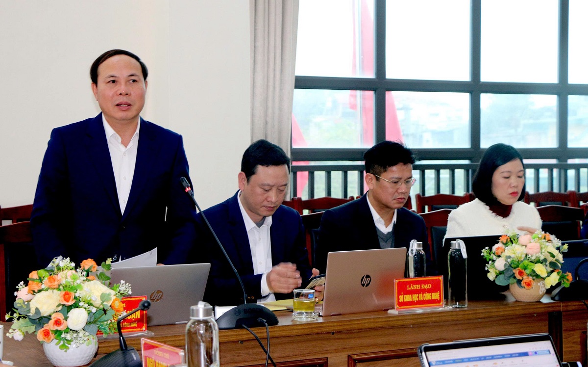 Đồng chí Trần Ngọc Luận - Ủy viên Ban Chấp hành Đảng bộ tỉnh, Giám đốc Sở Khoa học và Công nghệ phát biểu tại buổi làm việc