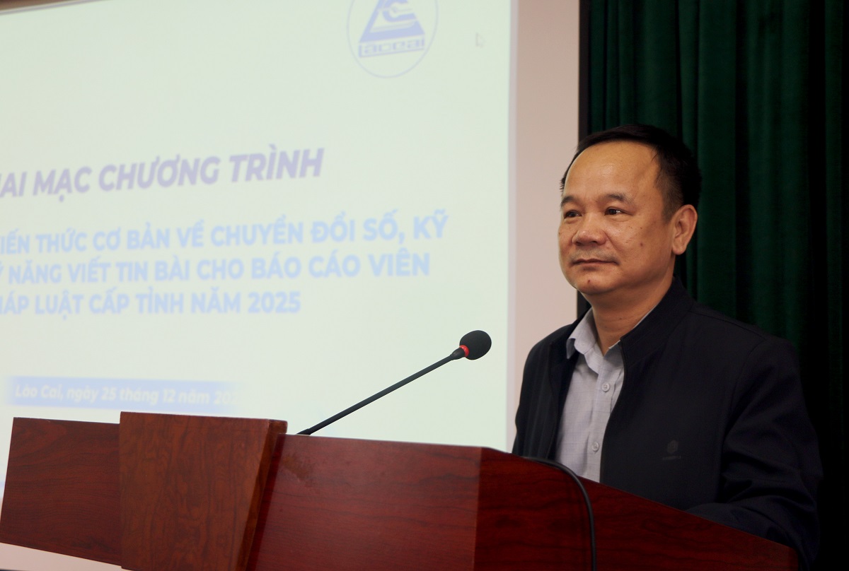 Thực hiện Kế hoạch số 137/KH-UBND ngày 22/10/2025 của UBND tỉnh Lào Cai về đào tạo, bồi dưỡng thúc đẩy chuyển đổi số liên thông, đồng bộ, nhanh, hiệu quả đáp ứng yêu cầu sắp xếp tổ chức bộ máy của hệ thống chính trị trên địa bàn tỉnh Lào Cai năm 2025. Ngày 25/11/2025, tại Khách sạn Hoa Mai, phường Yên Bái, Sở Khoa học và Công nghệ đã tổ chức đồng thời 02 Hội nghị bồi dưỡng kiến thức, kỹ năng chuyển đổi số cho đội ngũ Báo cáo viên pháp luật, tuyên truyền viên pháp luật cấp tỉnh.