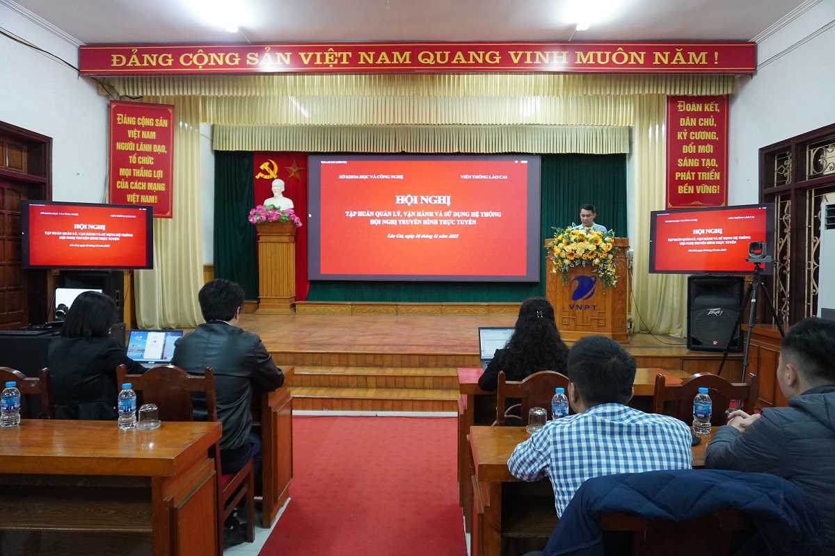 Chiều ngày 26/11/2025, tại Viễn Thông Lào Cai, Sở Khoa học và Công nghệ phối hợp với Viễn Thông Lào Cai, tổ chức Hội nghị tập huấn quản lý, vận hành và sử dụng hệ thống hội nghị truyền hình trực tuyến; hướng dẫn, xử lý tình huống, giải đáp những vướng mắc khi kết nối hệ thống hội nghị truyền hình tại các địa phương.